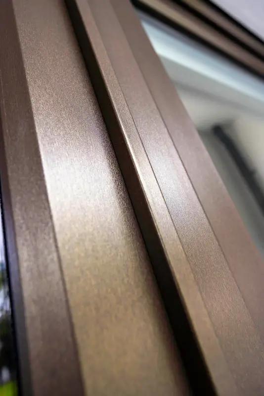 The Bronze Platin foil was made to order and sourced from Germany. Since we managed the design, manufacture and installation of the windows and doors, we could incorporate the long lead time on this component part without the risk of it delaying the project.